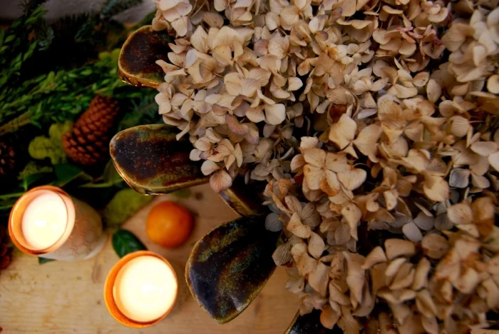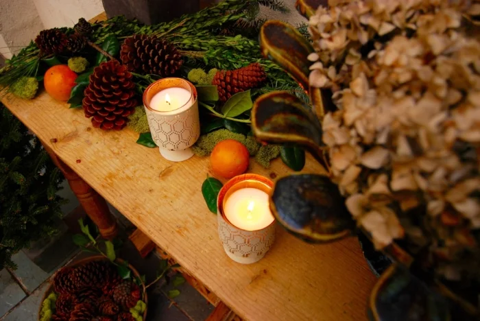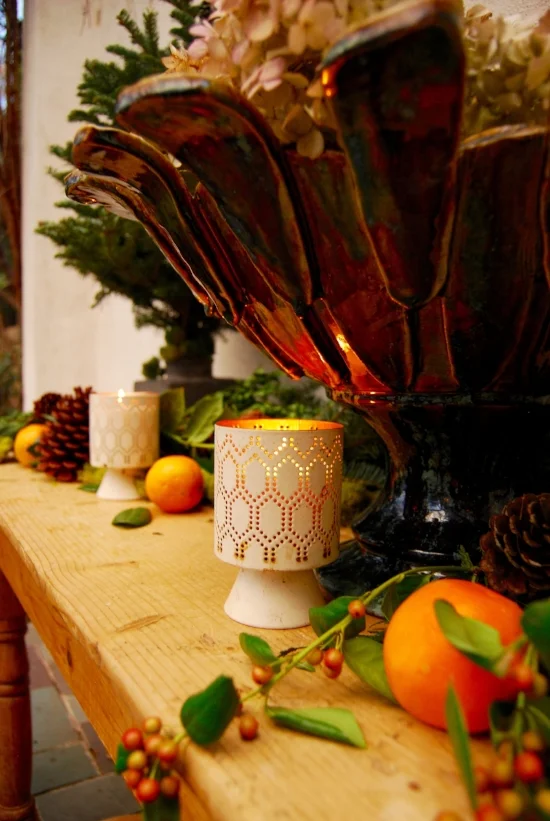 This layered decorative shrine was fun to create and only took me about an hour. As I have said before, try to use things you have in your kitchen, yard, and house to decorate for the Holidays: you will surprise yourself at what you can come up with.